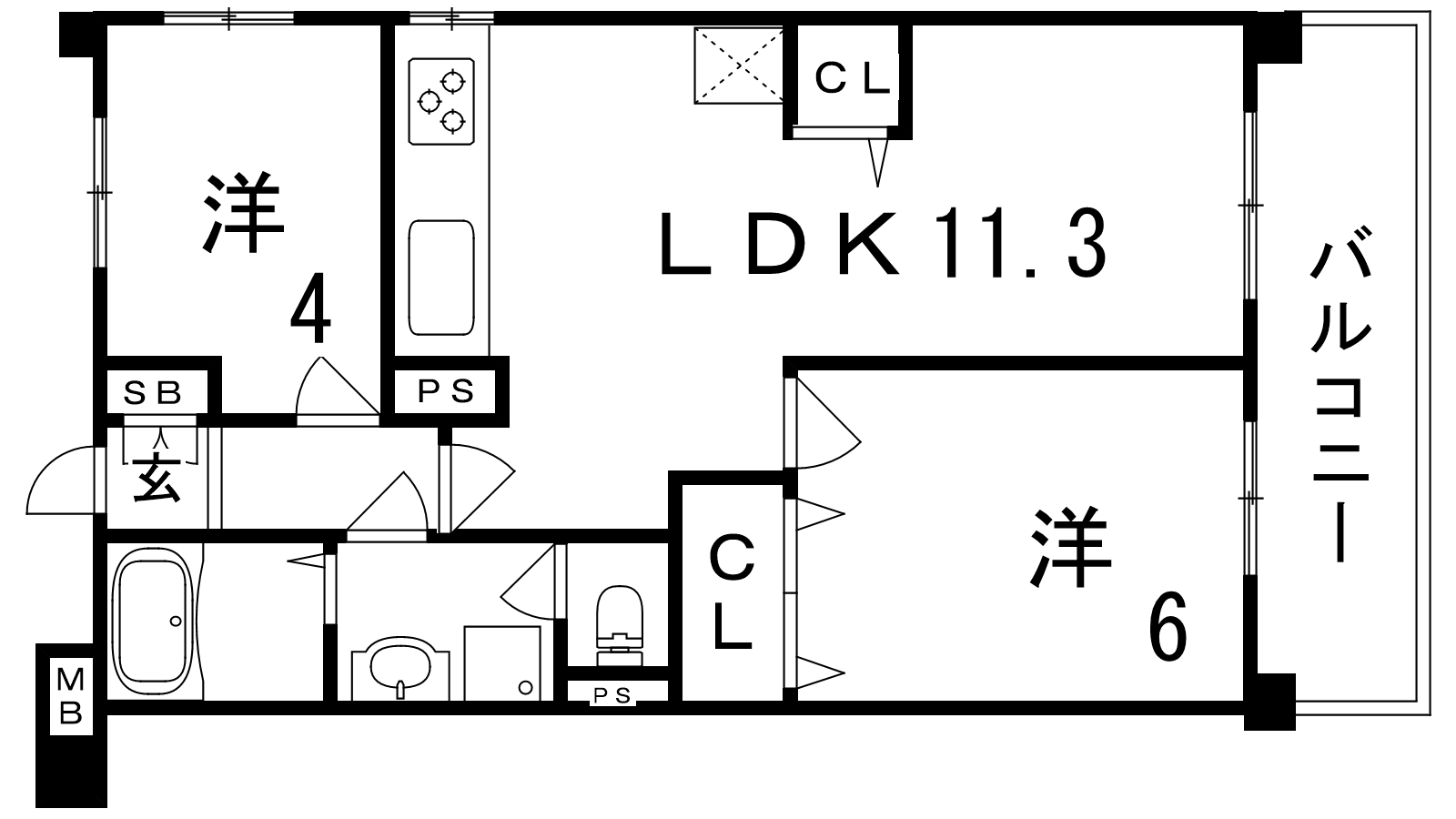 - LDK11.3帖、洋室6帖、洋室4帖