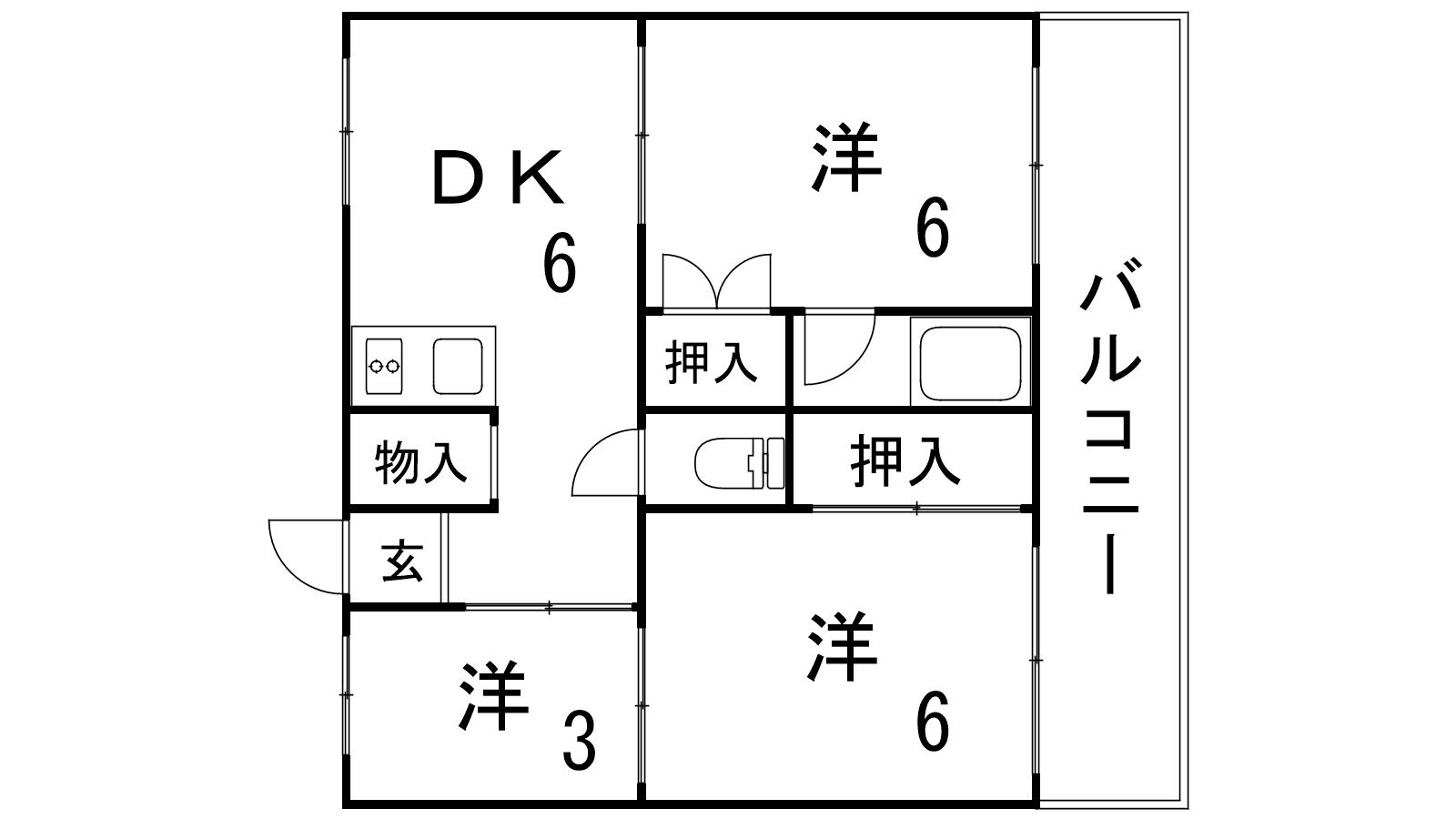 - DK6帖、和室6帖、和室6帖、和室3帖