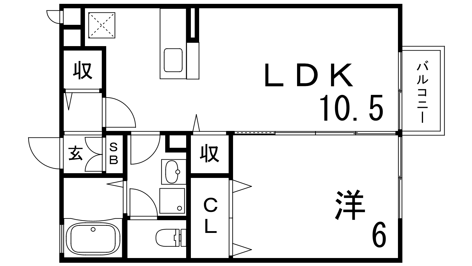 カウンターキッチン付の広々1LDK 収納豊富 浴室に窓付
