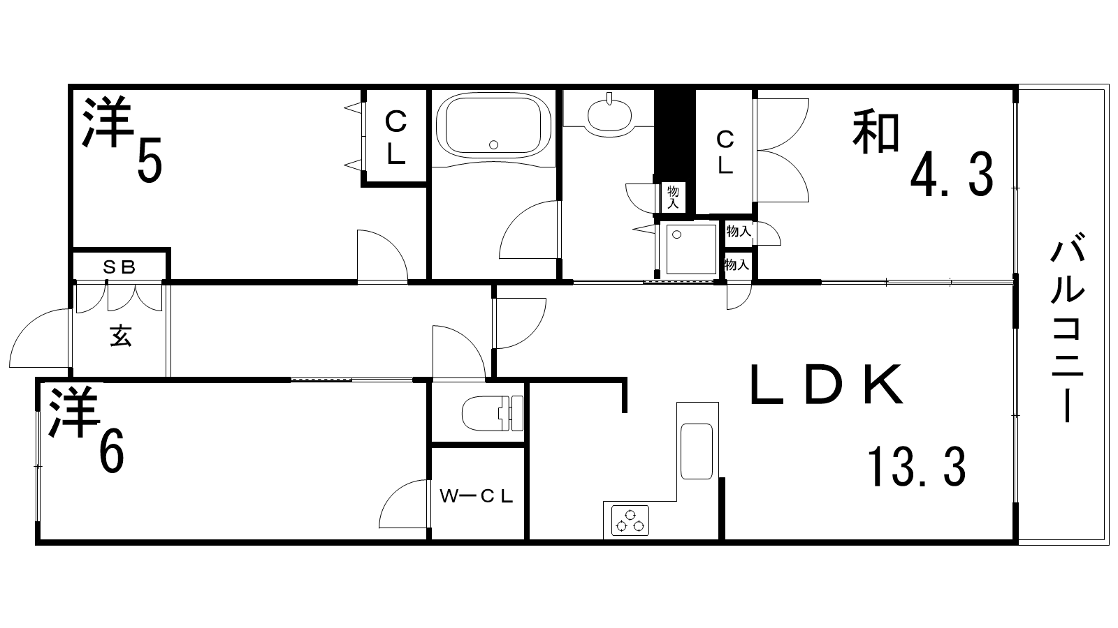 - LDK13.3帖、洋室6帖、洋室5帖、和室4.3帖