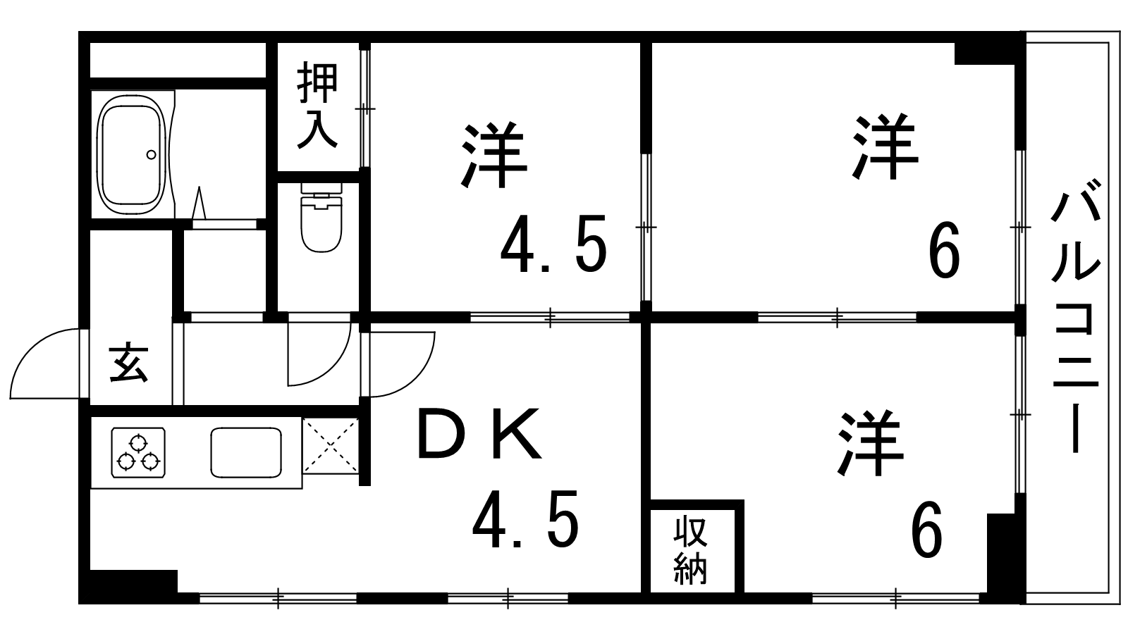 - DK4.5帖、洋室6帖、洋室6帖、洋室4.5帖