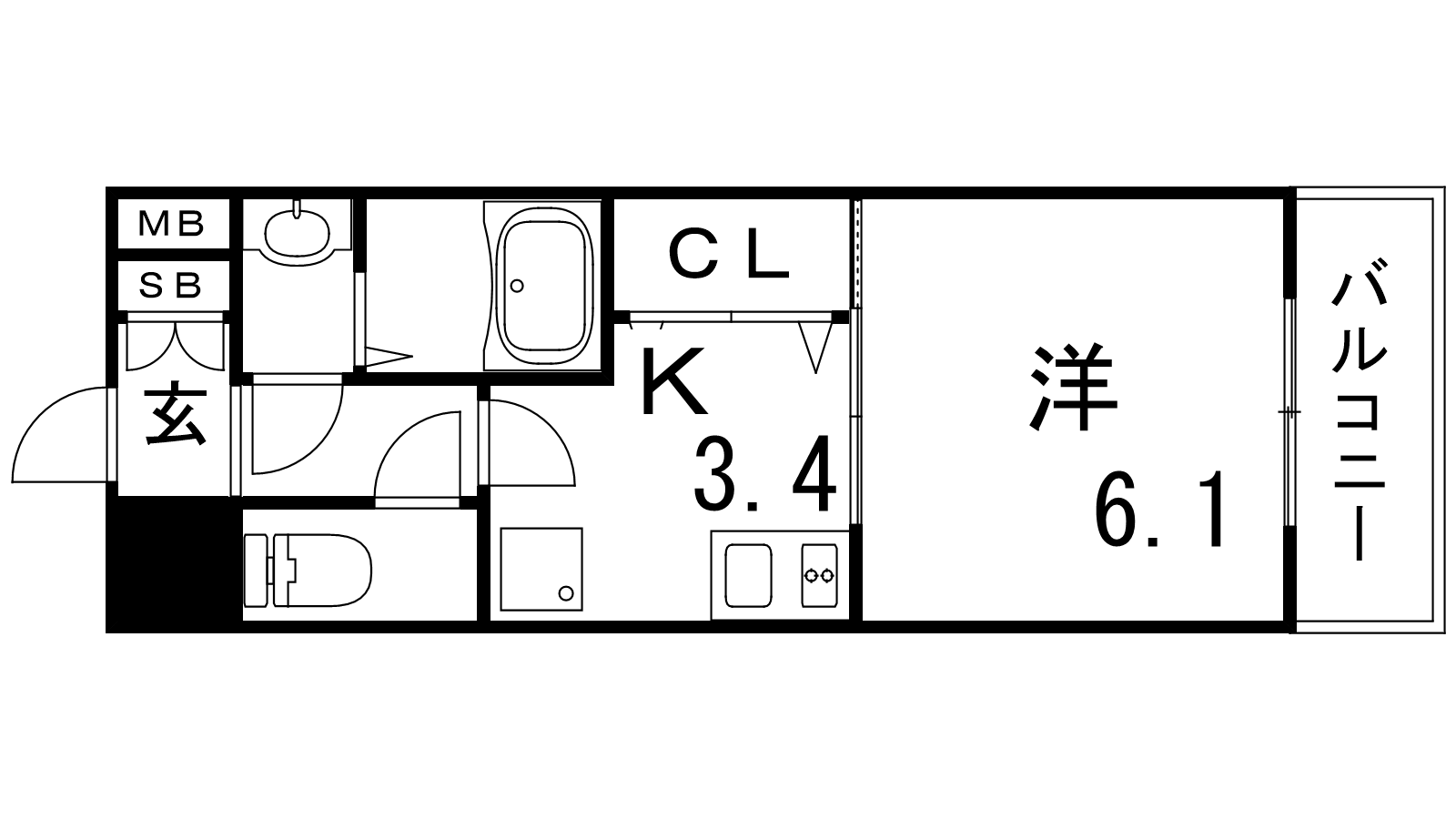 - K3.4帖、洋室6.1帖