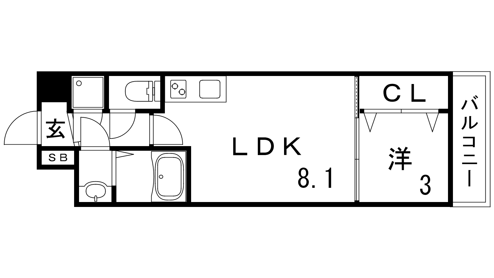 - LDK8.1帖、洋室3帖