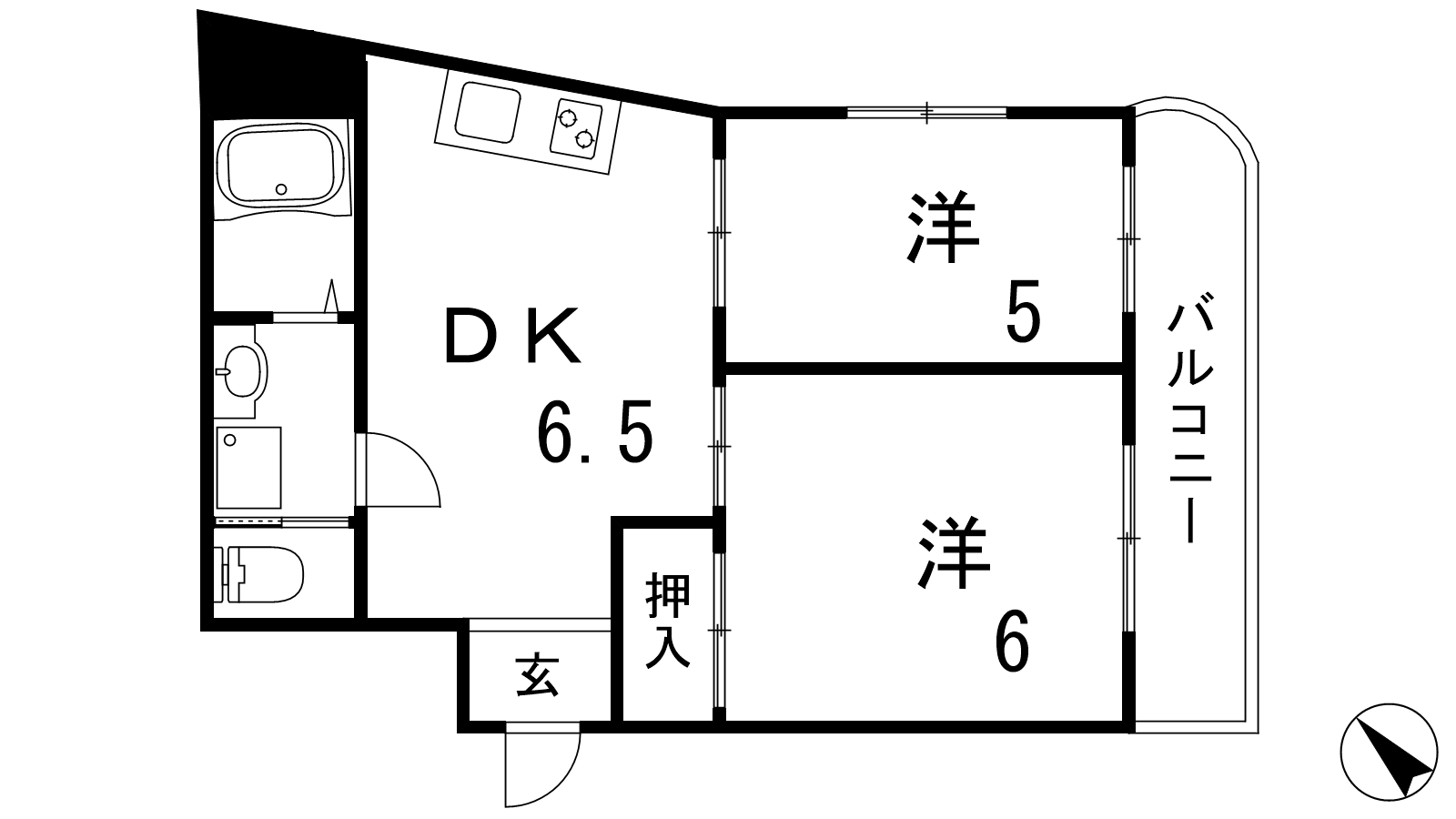 - DK6.5帖、洋室6帖、洋室5帖