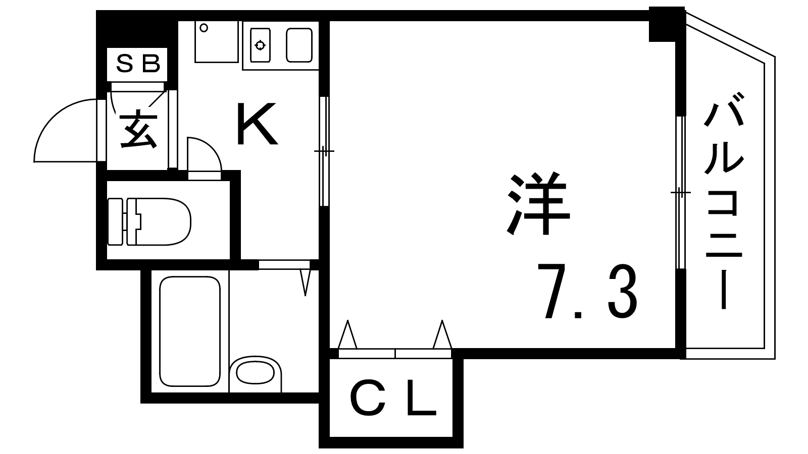 - K2帖、洋室7.3帖