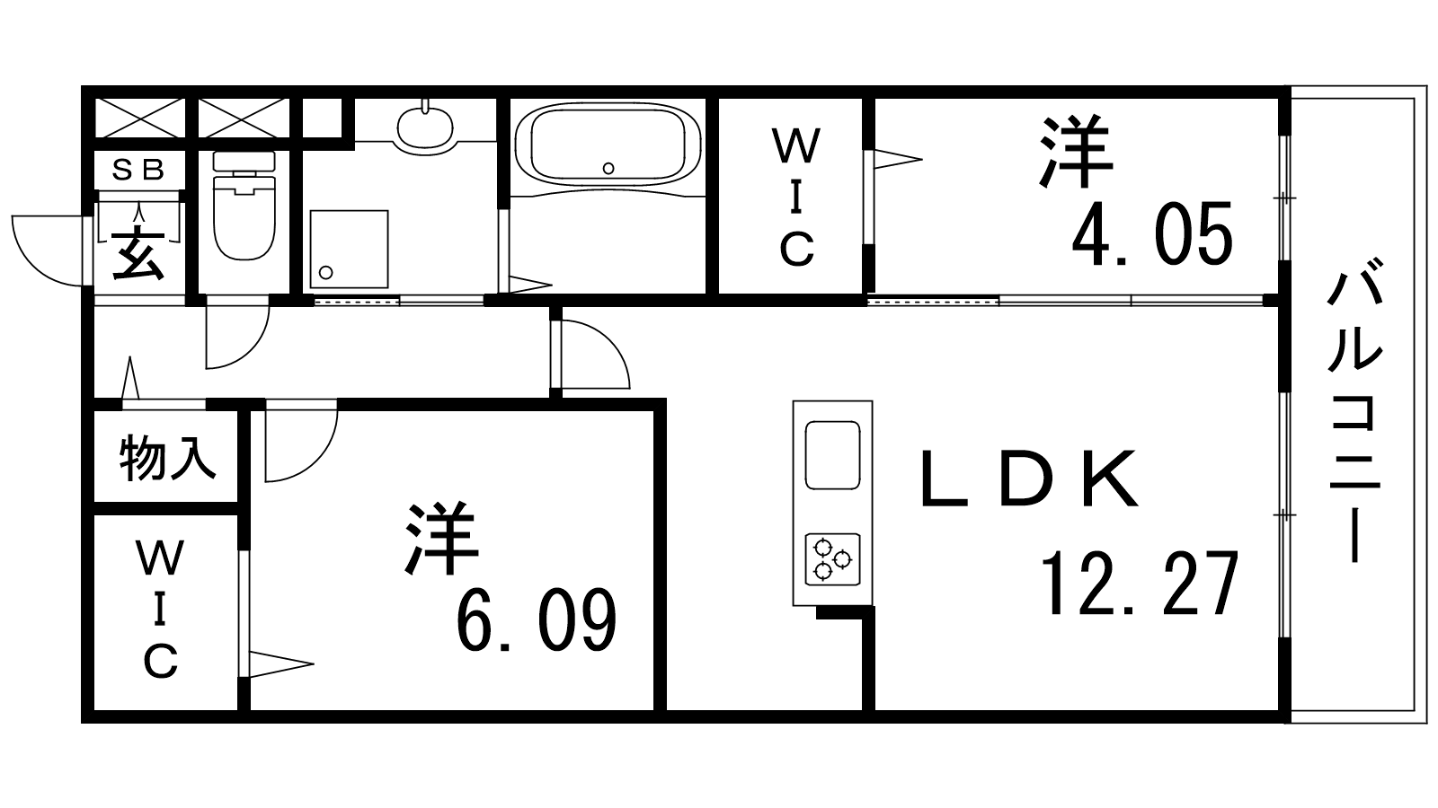 - LDK12.72帖、洋室6.09帖、洋室4.05帖