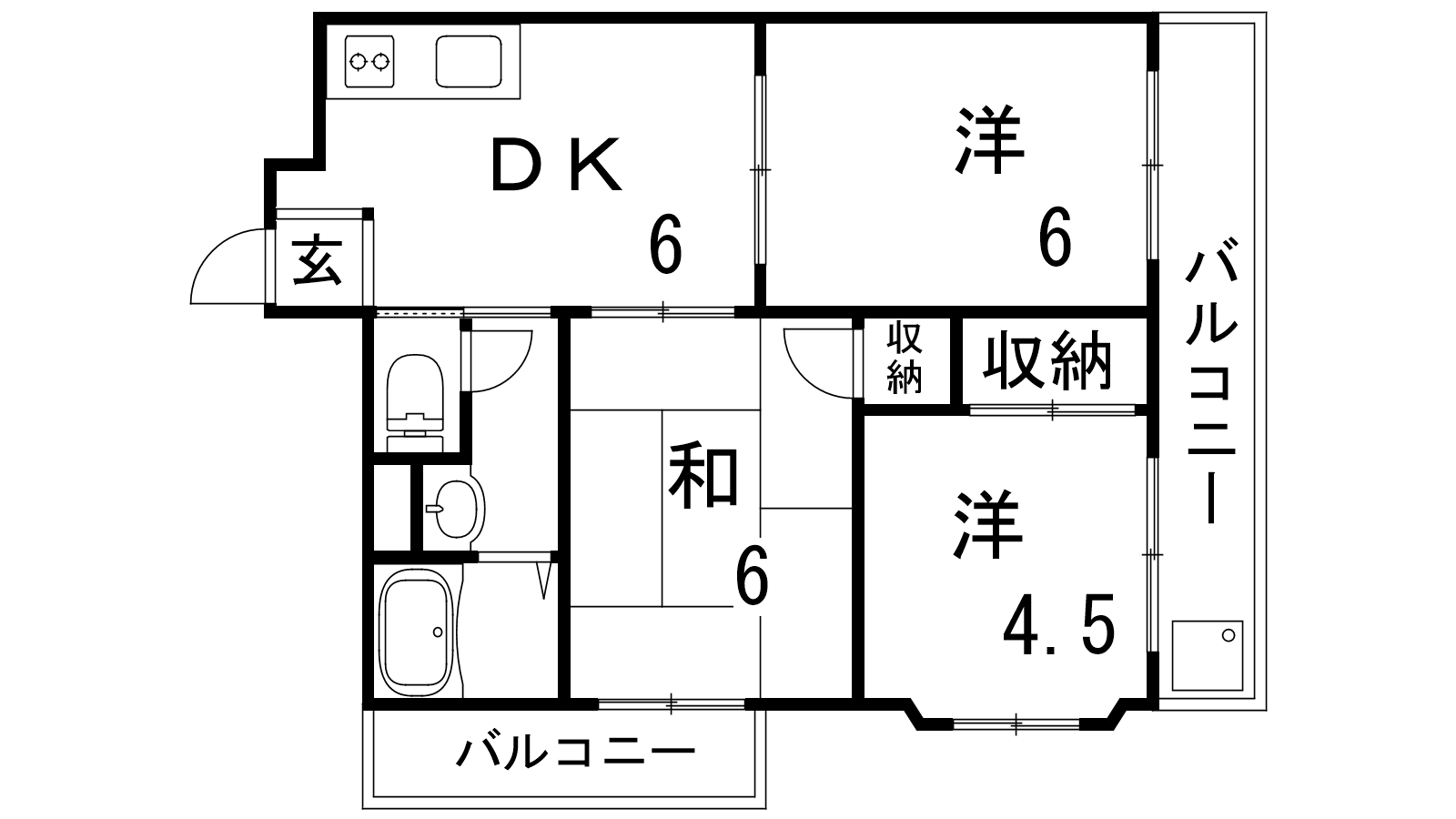 - DK7帖、洋室6帖、和室6帖、洋室4.5帖