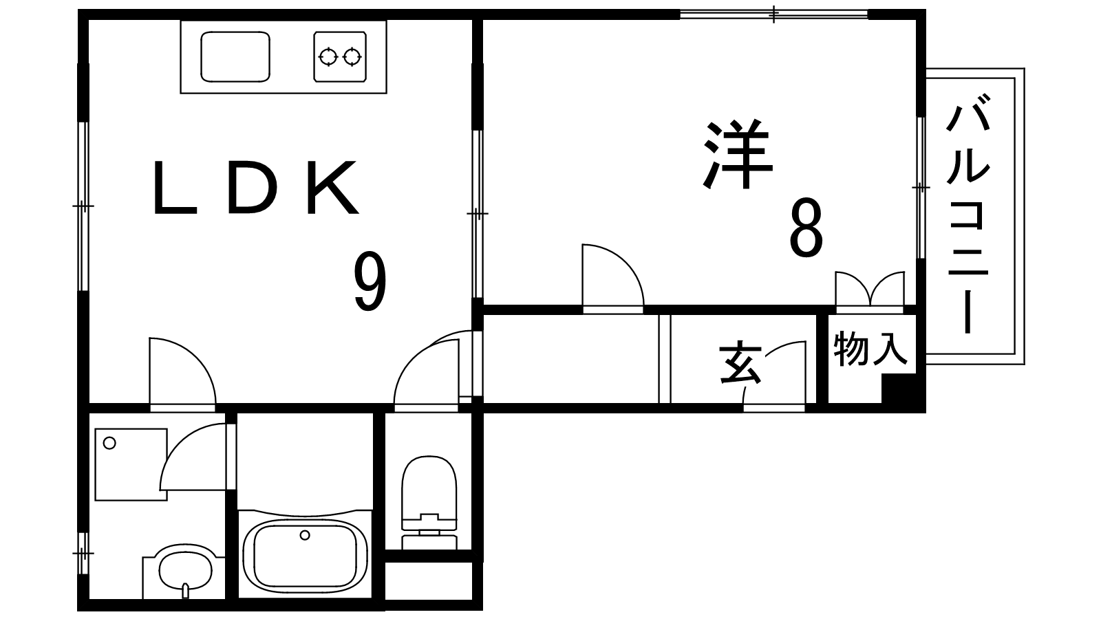 - LDK9帖、洋室8帖