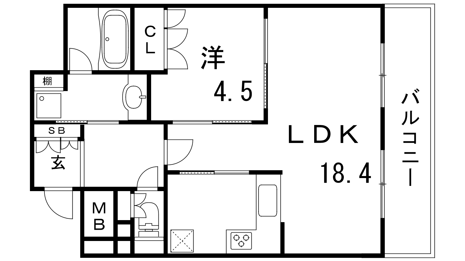 - LDK18.4帖、洋室4.5帖