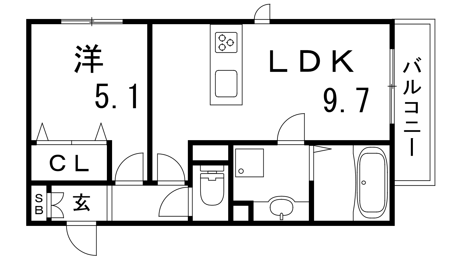 - LDK9.7帖、洋室5.1帖
