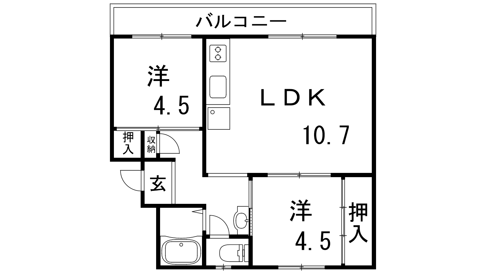- LDK10.7帖、洋室4.5帖、洋室4.5帖