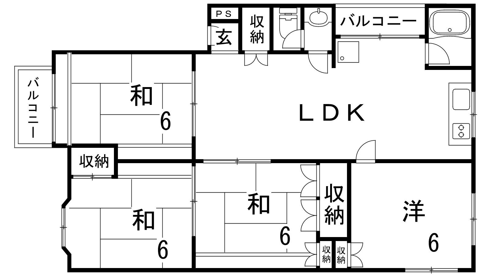 - 和室6帖、和室6帖、和室6帖、洋室6帖、洋室6帖
