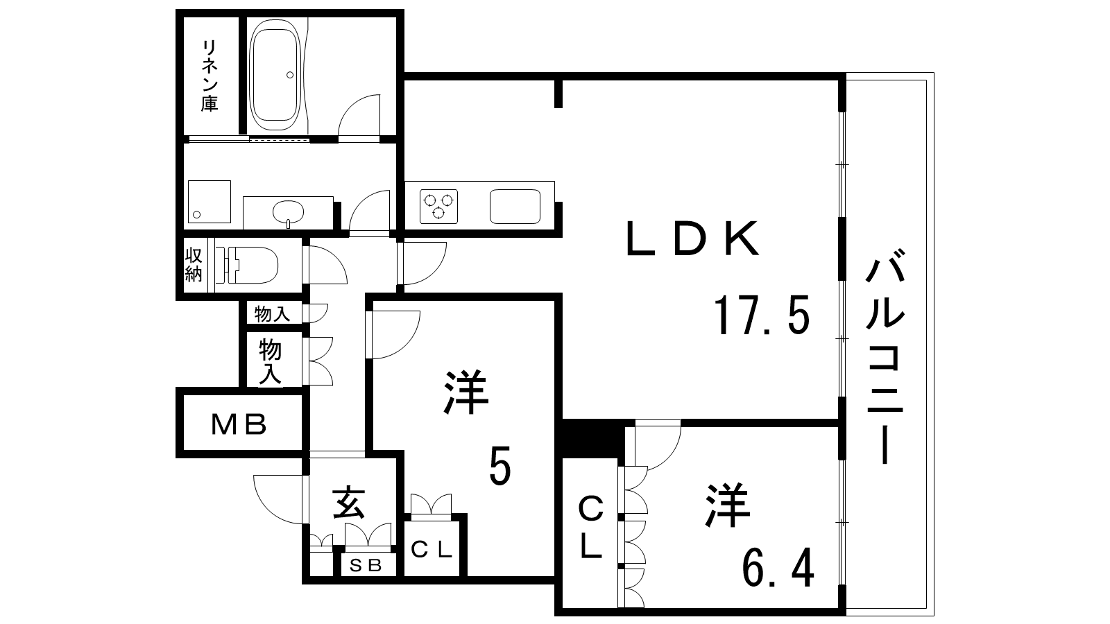 - LDK17.5帖、洋室6.5帖、洋室5帖