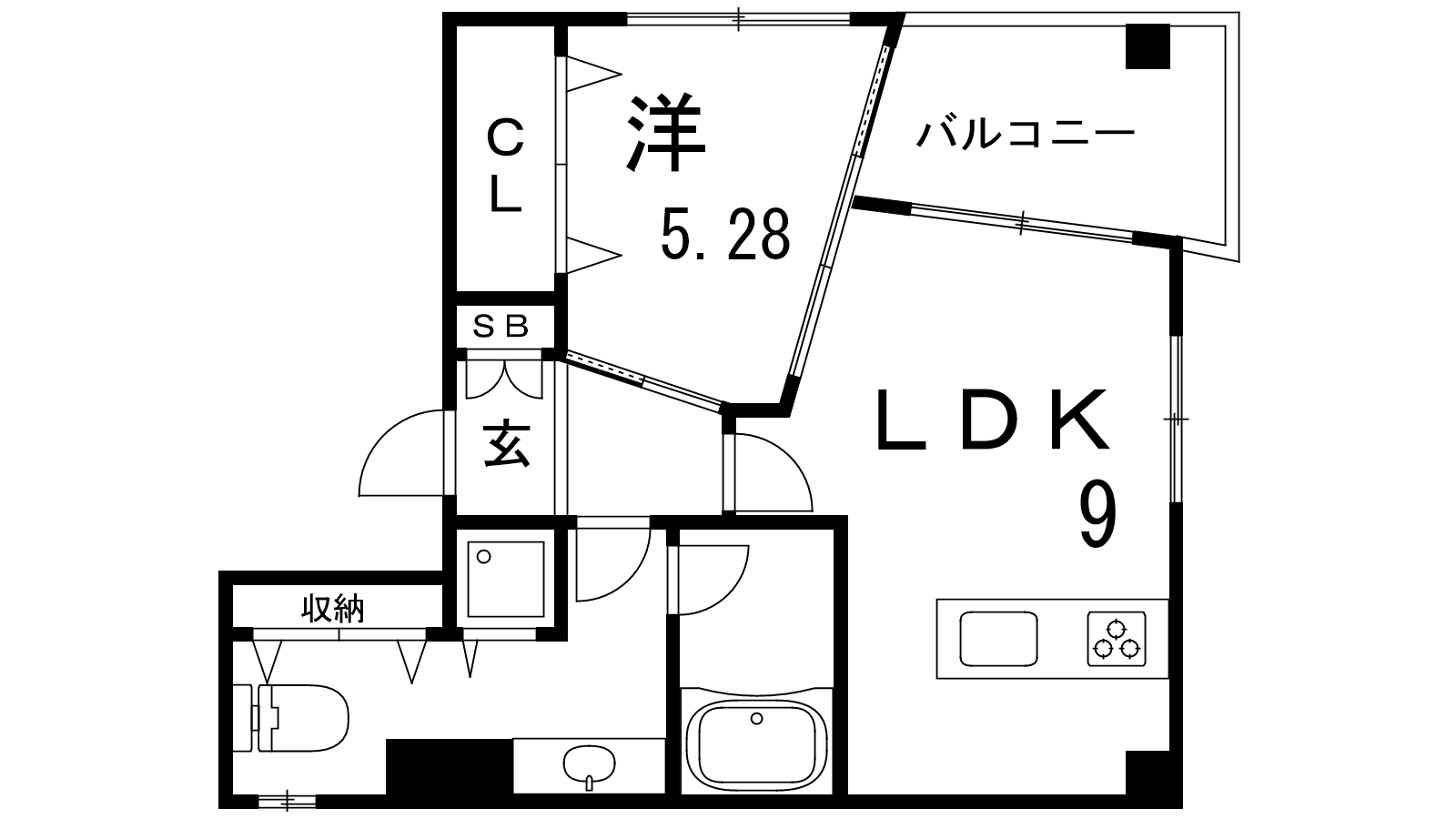 - LDK9帖、洋室5.28帖