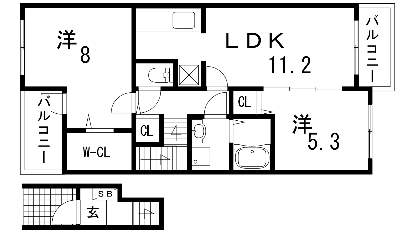 - LDK11.2帖、洋室8帖、洋室5.3帖