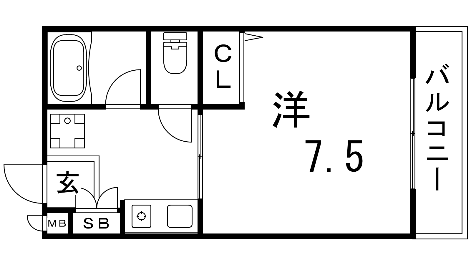 - K2.5帖、洋室7.5帖
