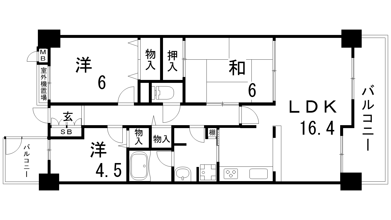 - 和室6帖、洋室6帖、洋室4.5帖