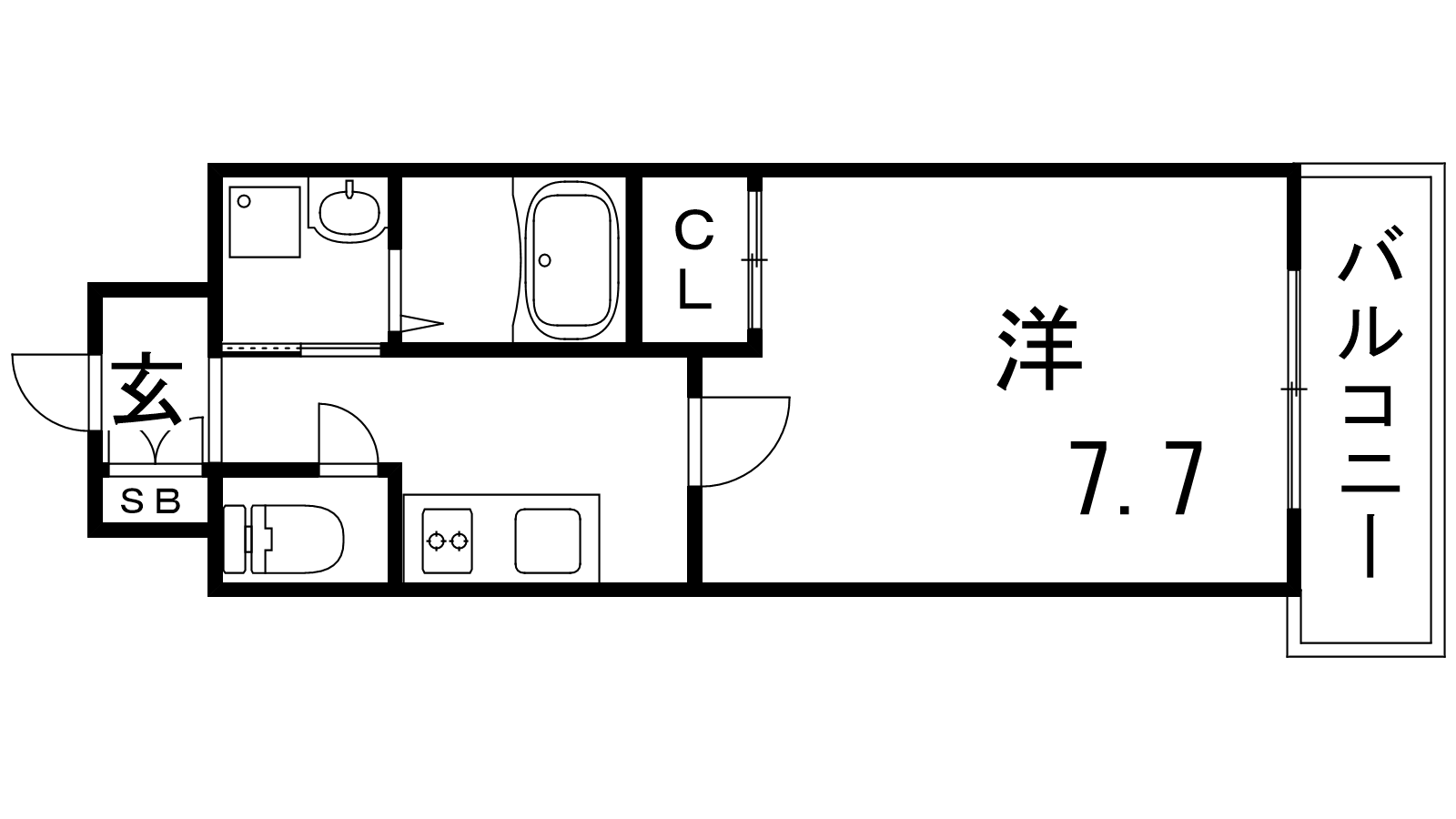 - K2帖、洋室7.7帖