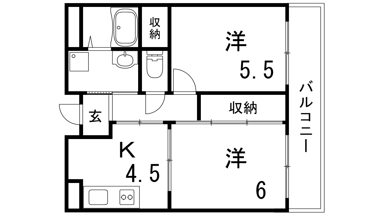 - K4.5帖、洋室6帖、洋室5帖