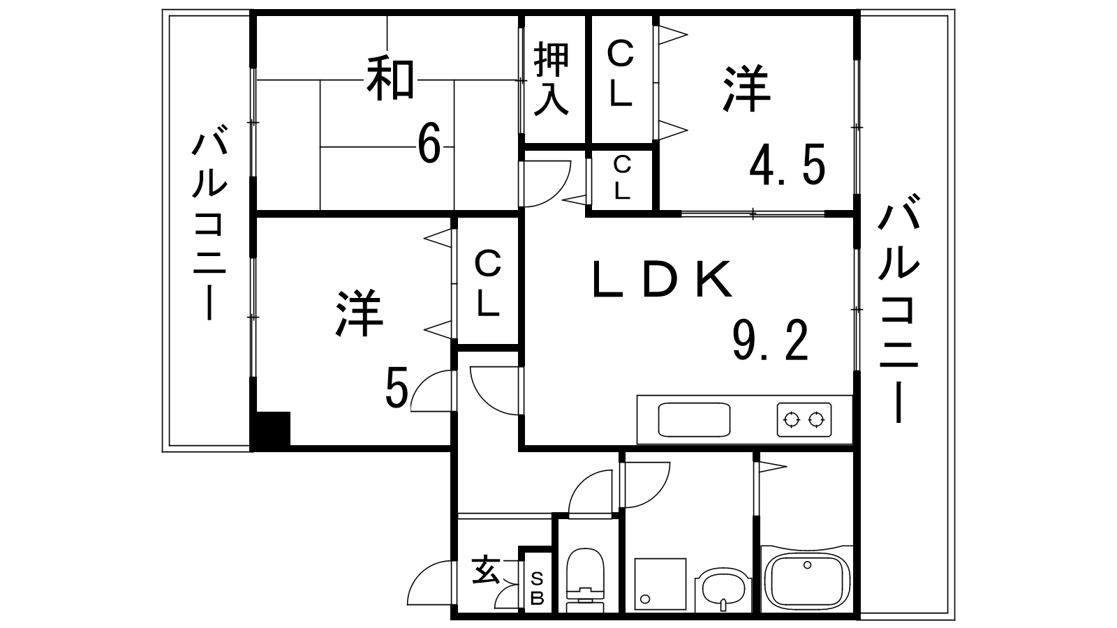 - LDK9.2帖、洋室4.5帖、洋室5帖、和室6帖