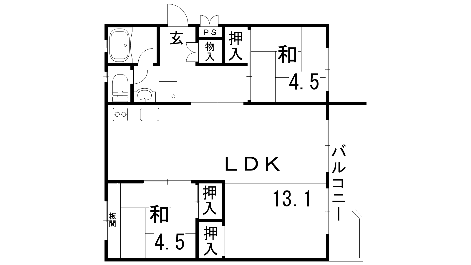 - LDK13.1帖、和室4.5帖、和室4.5帖