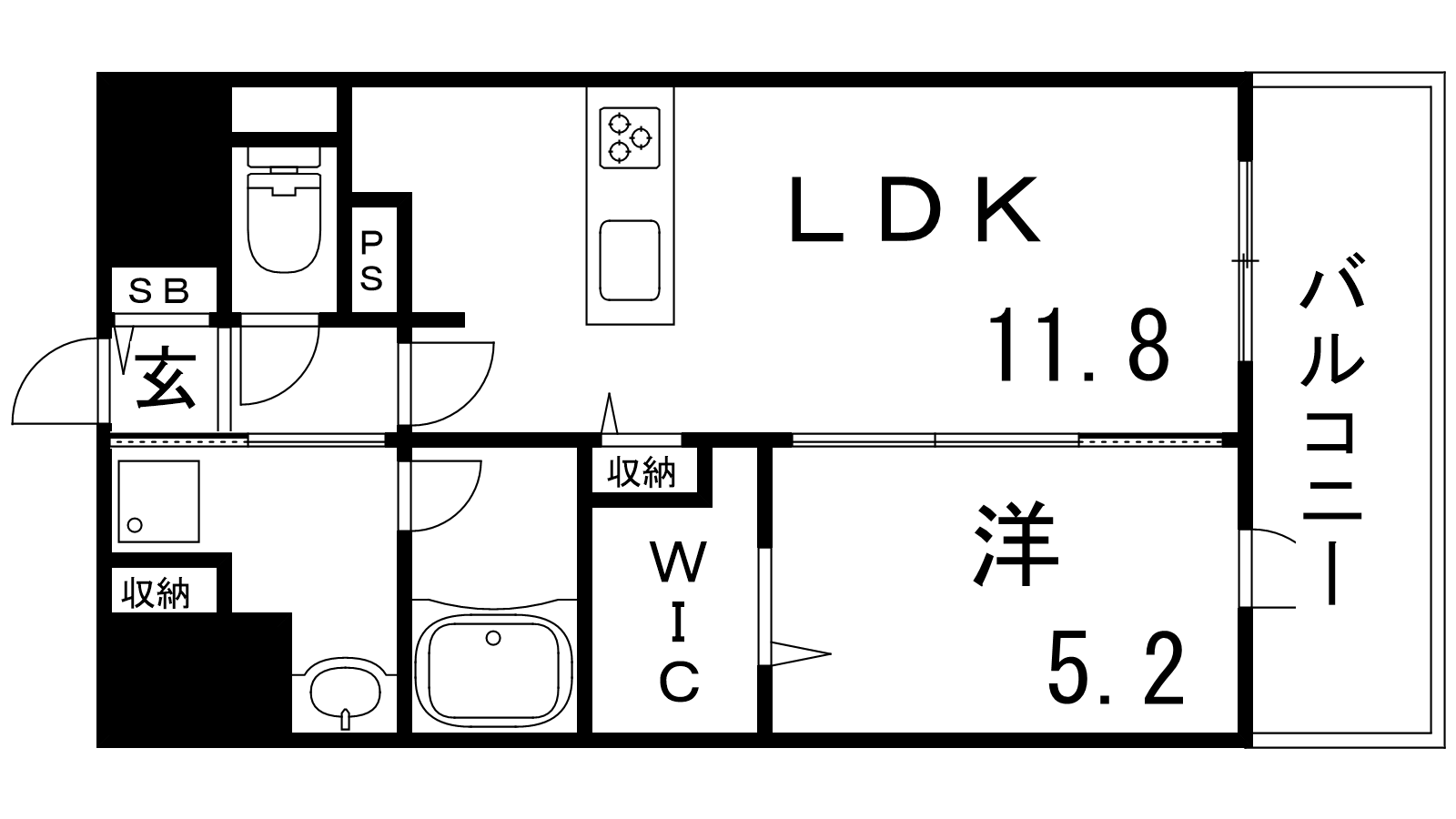- LDK11.8帖、洋室5.2帖