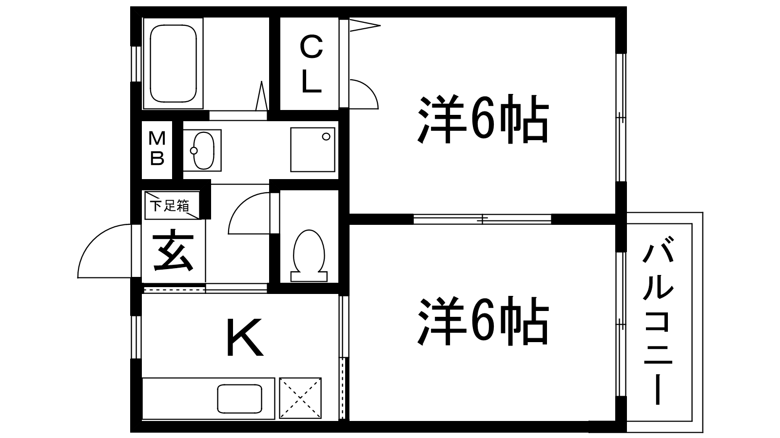 - K3帖、洋室6帖、洋室6帖