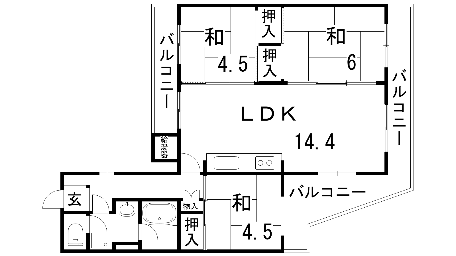 - LDK14.4帖、和室6帖、和室4.5帖、和室4.5帖