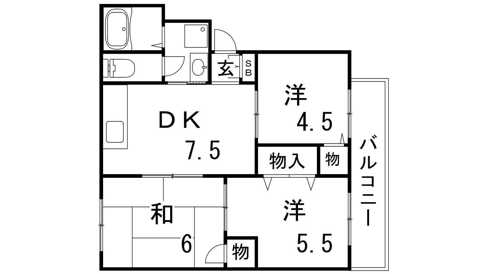- DK7.5帖、和室6帖、洋室4.5帖、洋室5.5帖