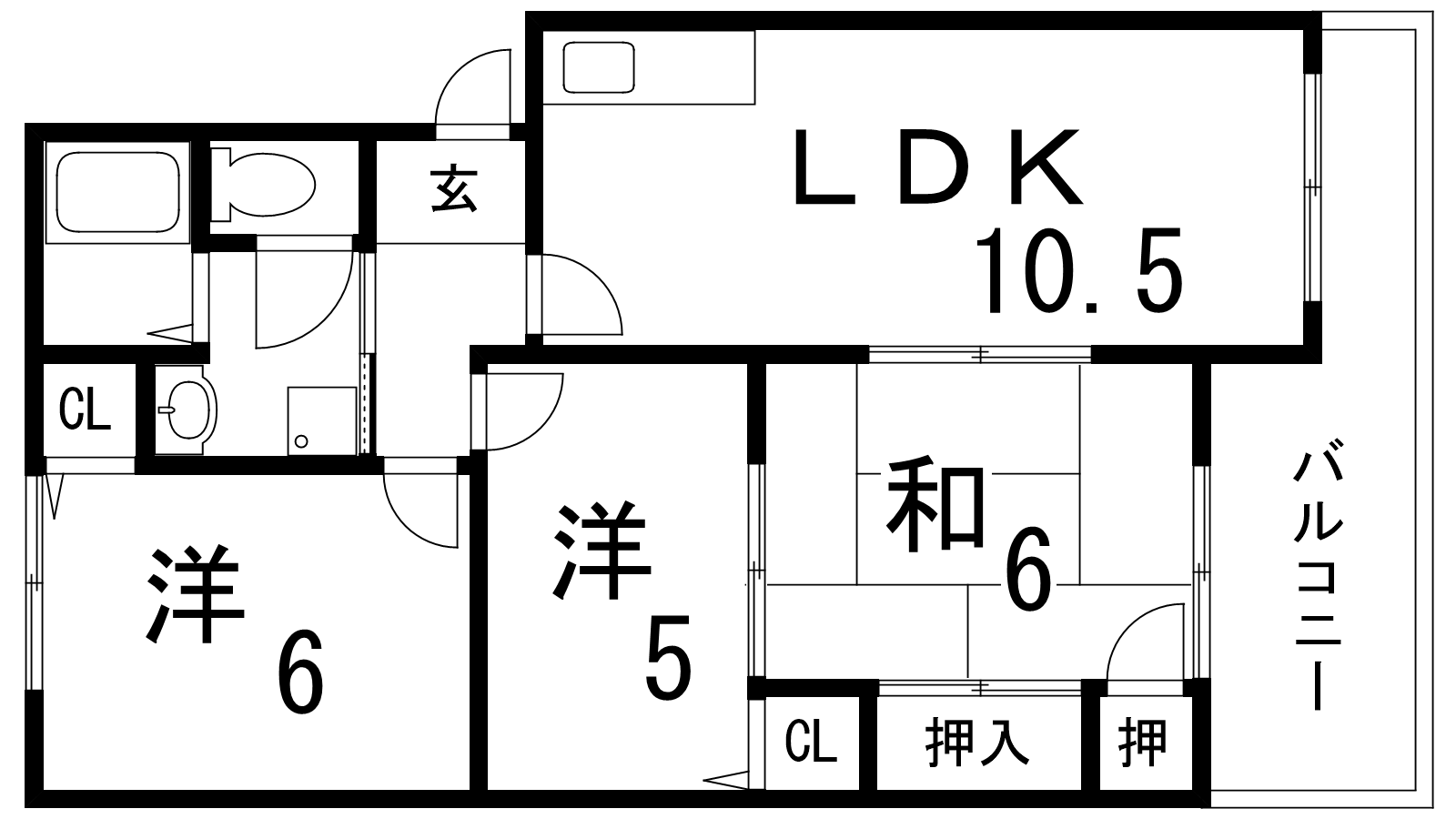 - LDK10.5帖、洋室6帖、洋室5帖、和室6帖