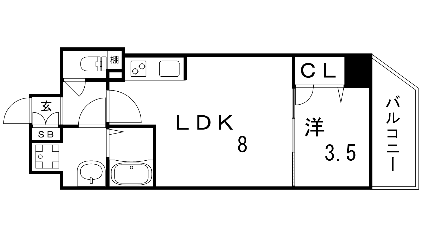 - 洋室3.5帖、LDK8帖