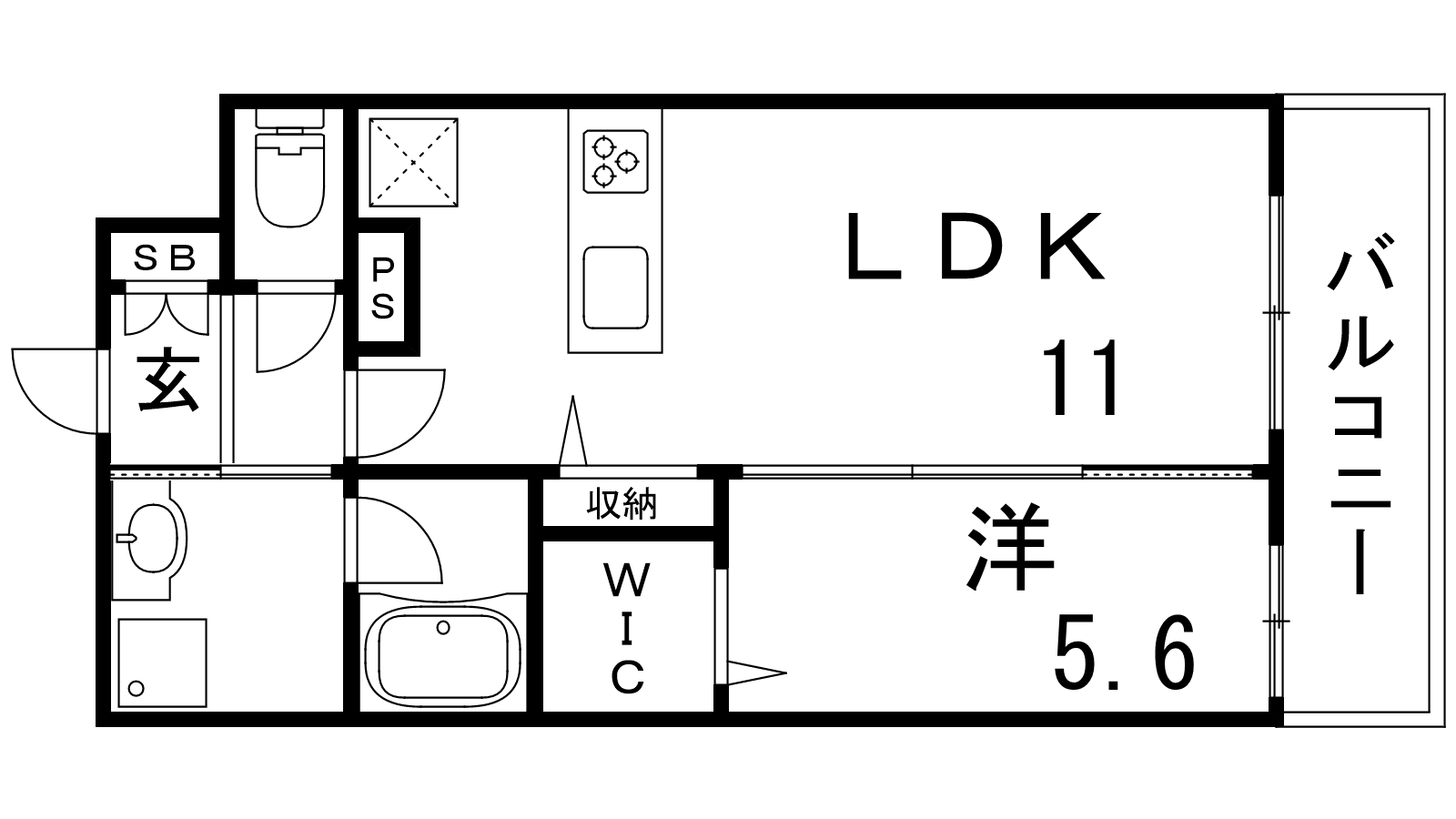 - LDK11帖、洋室5.6帖