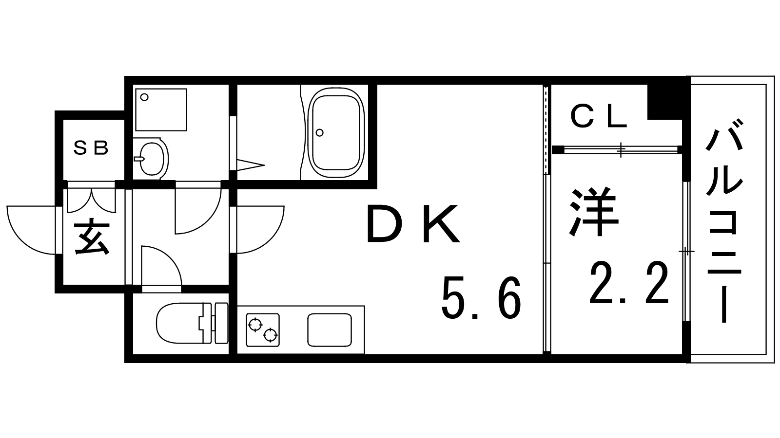 - 洋室2.2帖、DK5.8帖