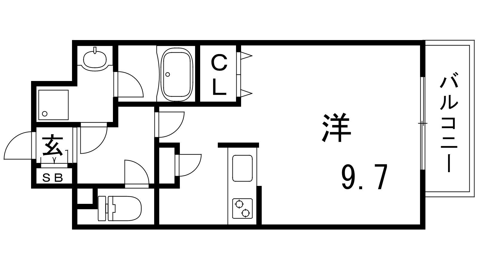 - K2.5帖、洋室9.7帖