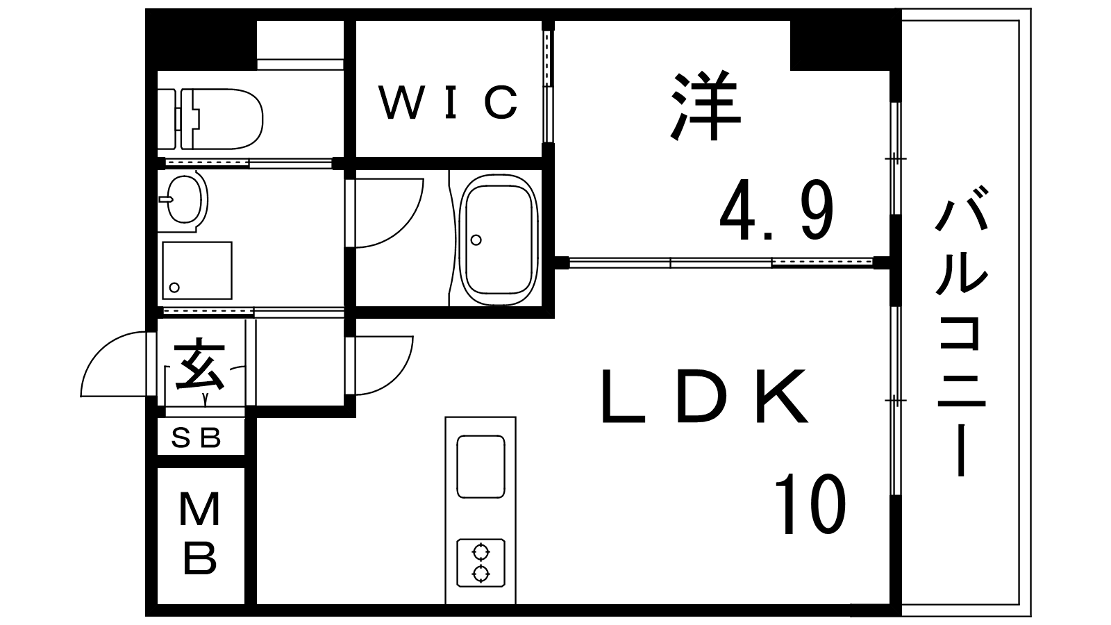 - LDK10帖、洋室4.9帖