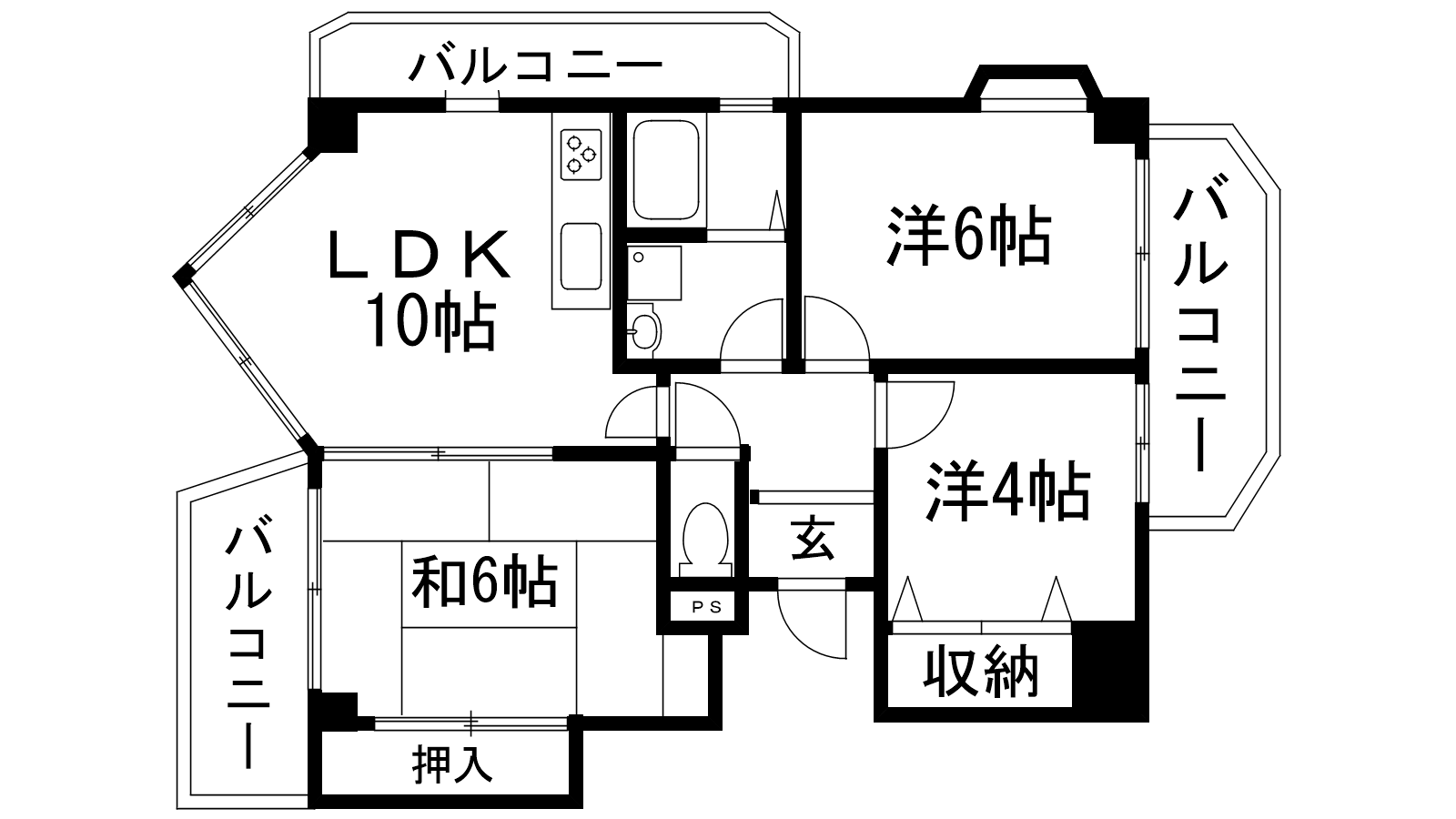 - LDK13.5帖、和室6帖、洋室4帖、洋室6帖