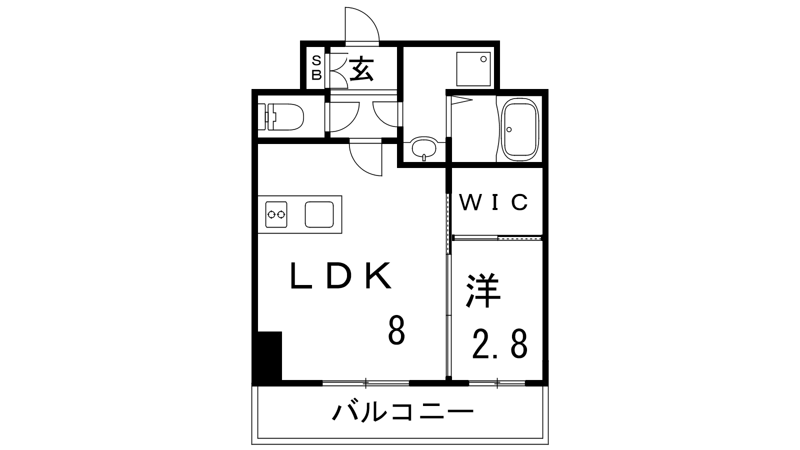 - LDK8帖、洋室2.8帖