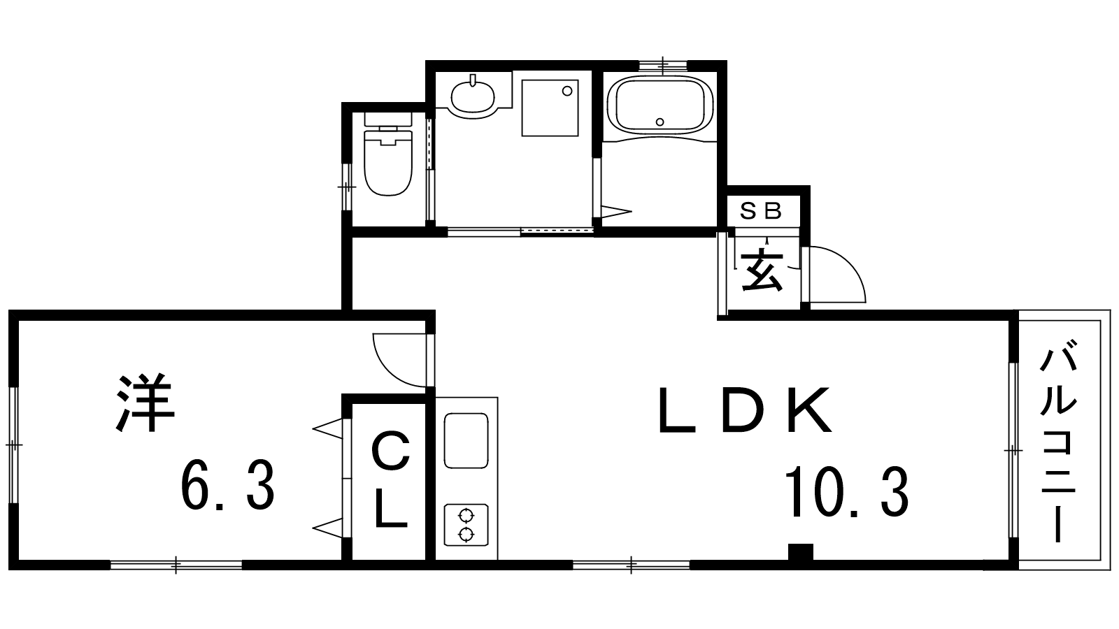 - LDK10.3帖、洋室6.3帖