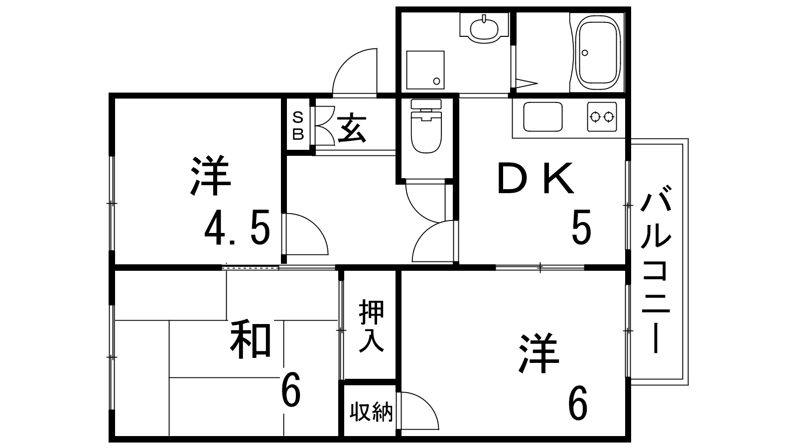 - DK5帖、洋室6帖、洋室4.5帖、和室6帖