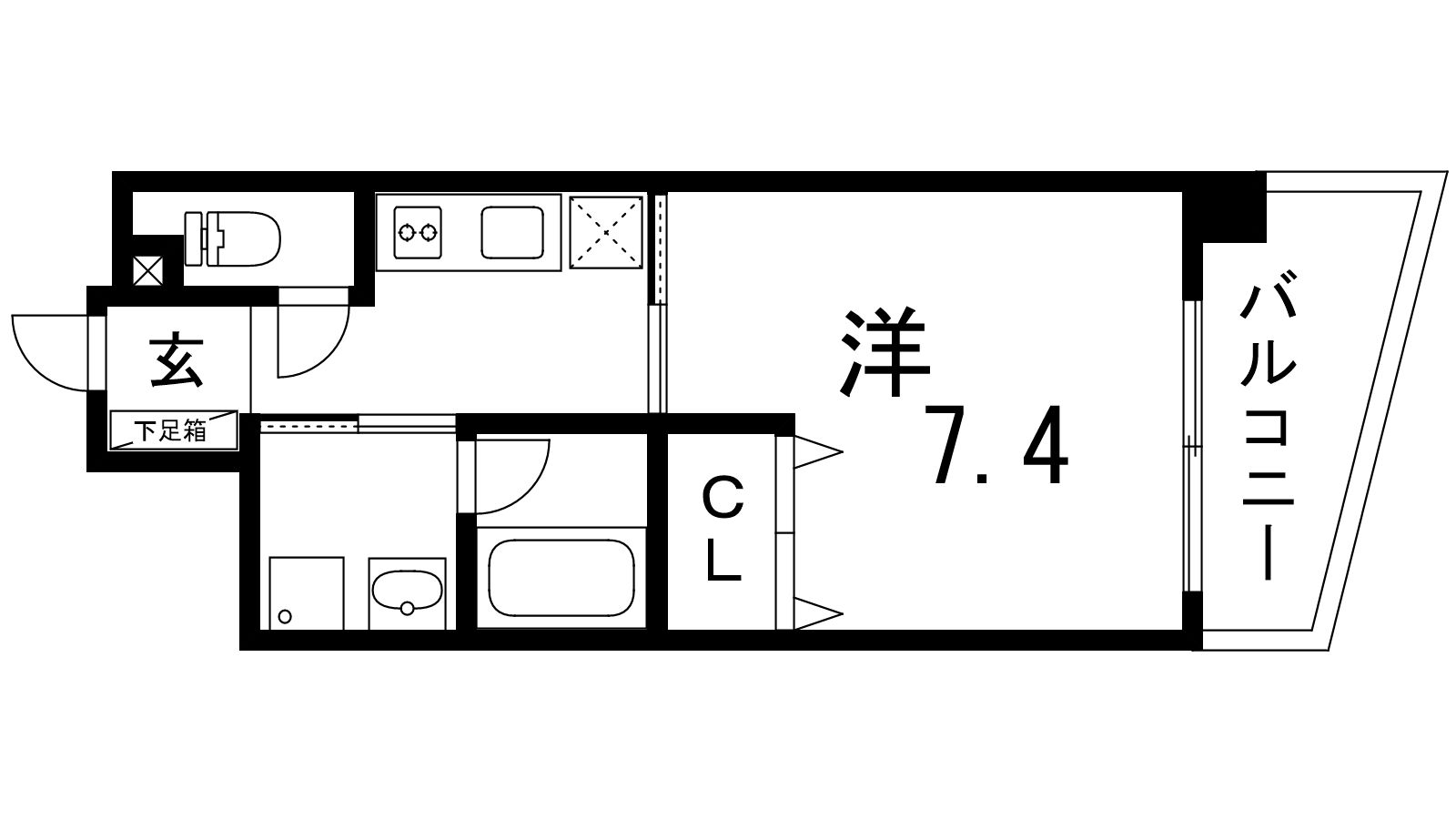 - K2.5帖、洋室7.4帖