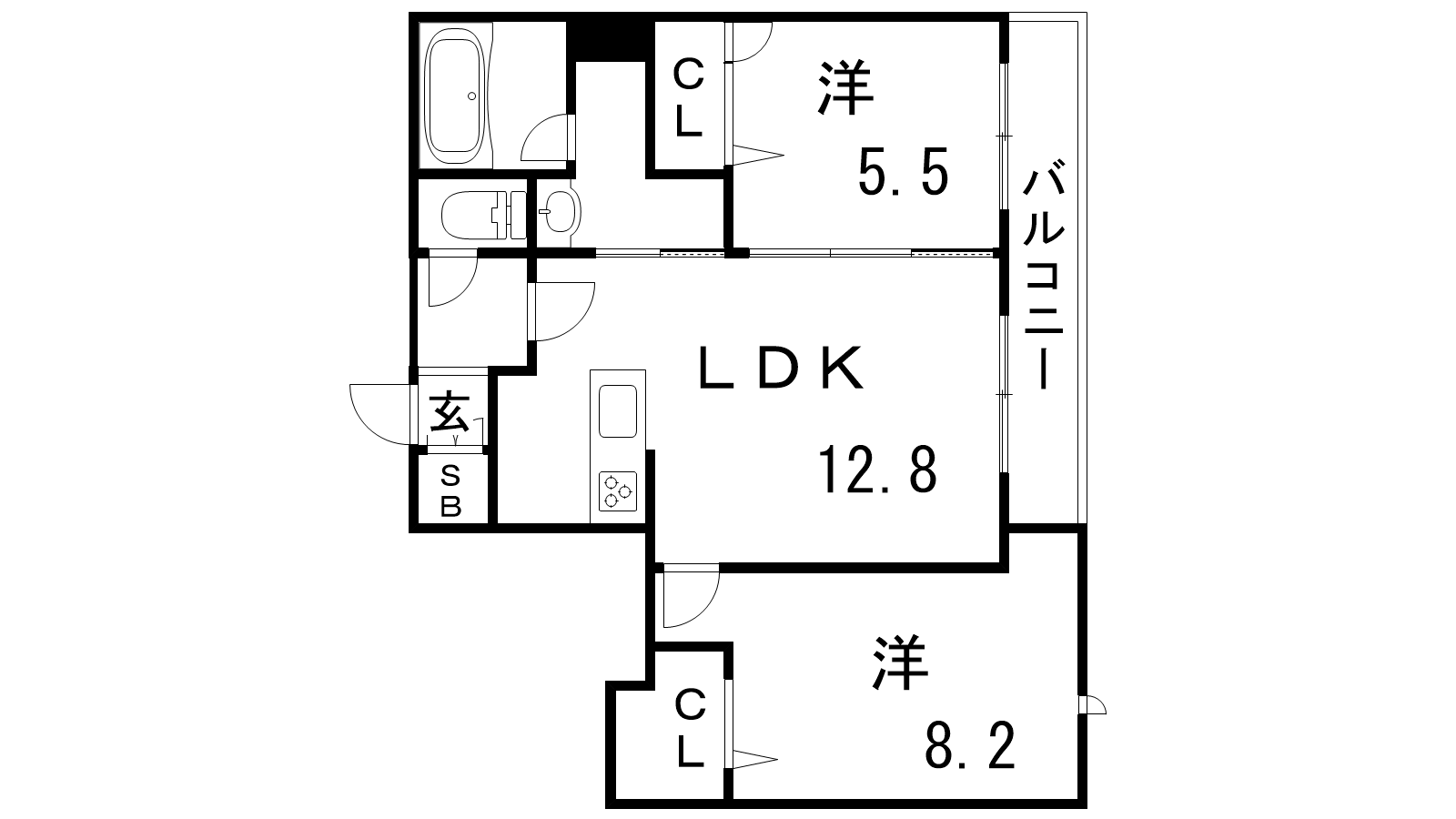 - LDK12.8帖、洋室8.2帖、洋室5.5帖