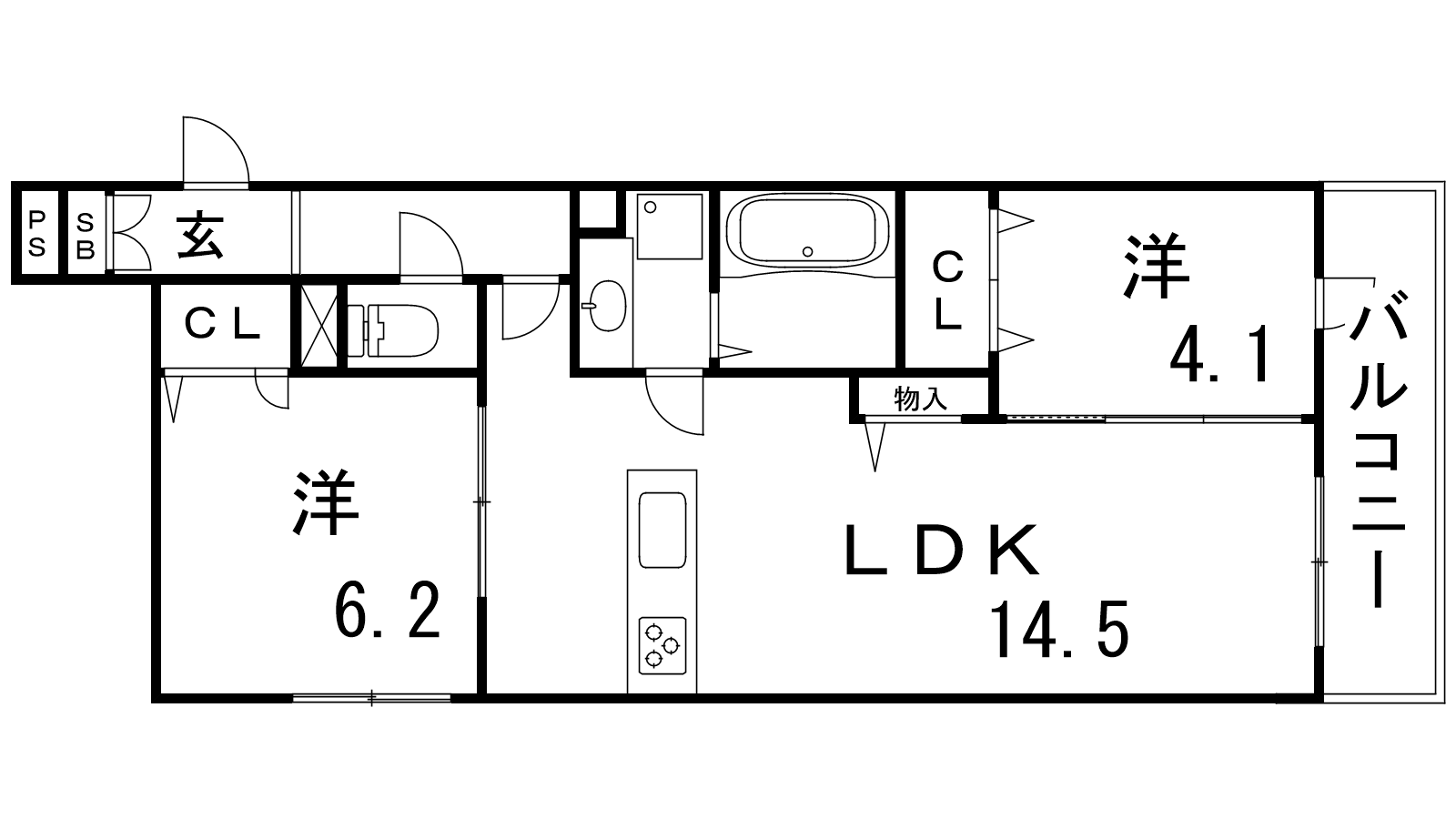 - LDK14.5帖、洋室6.2帖、洋室4.1帖