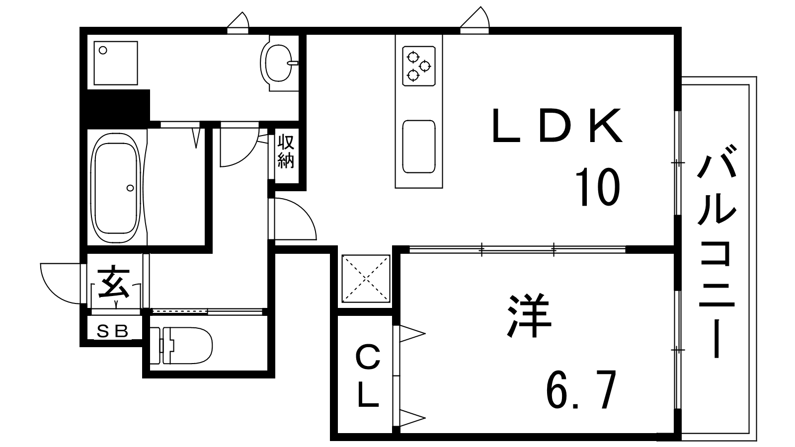 - LDK10帖、洋室6.7帖