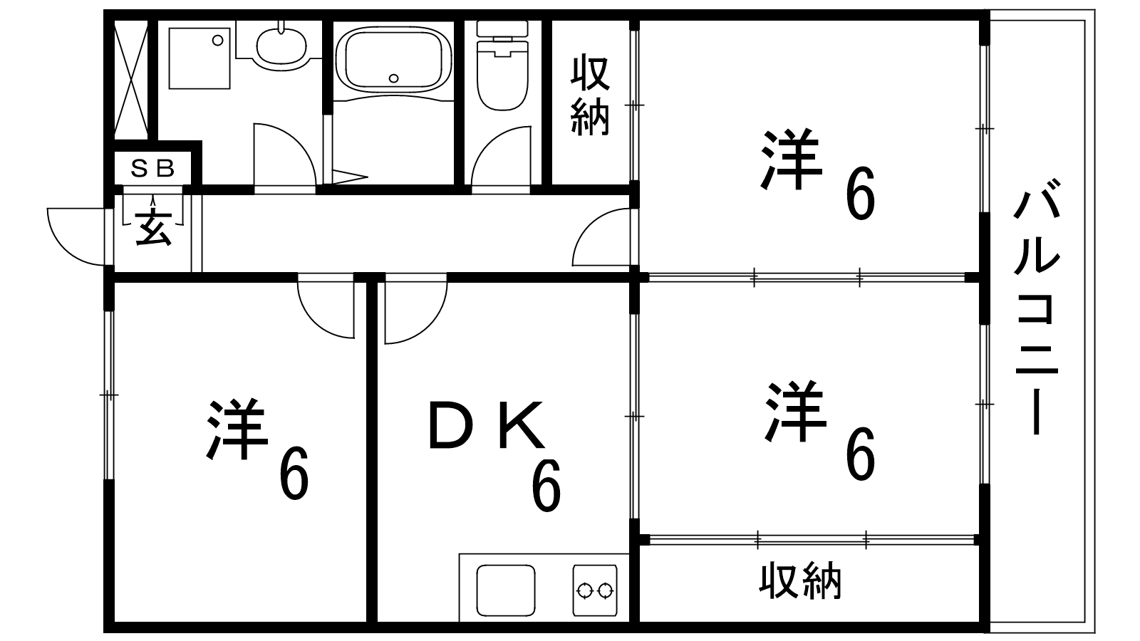 - DK6帖、洋室6帖、洋室6帖、洋室6帖