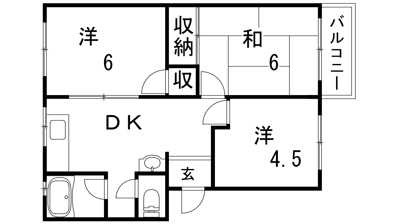 - DK6帖、洋室4.5帖、洋室6帖、和室6帖