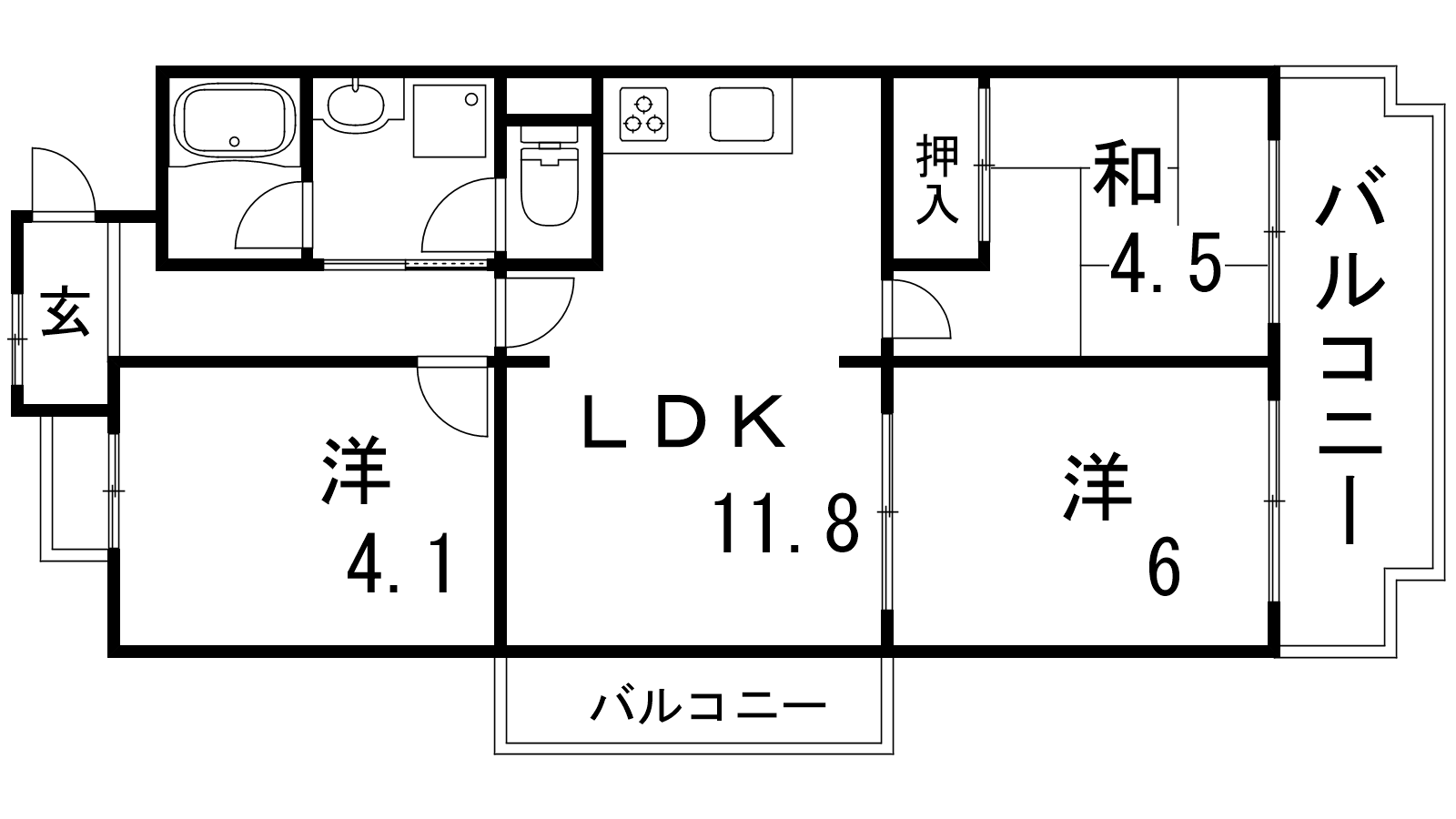 - LDK11.8帖、洋室6帖、洋室4.1帖、和室4.5帖