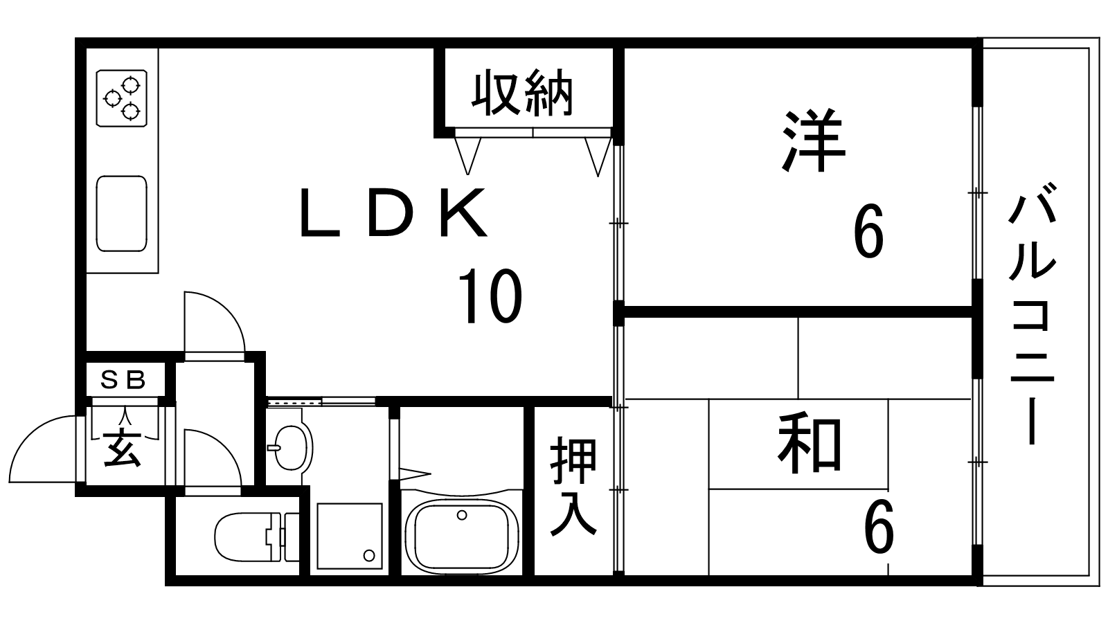 - LDK9.5帖、洋室6帖、和室6帖