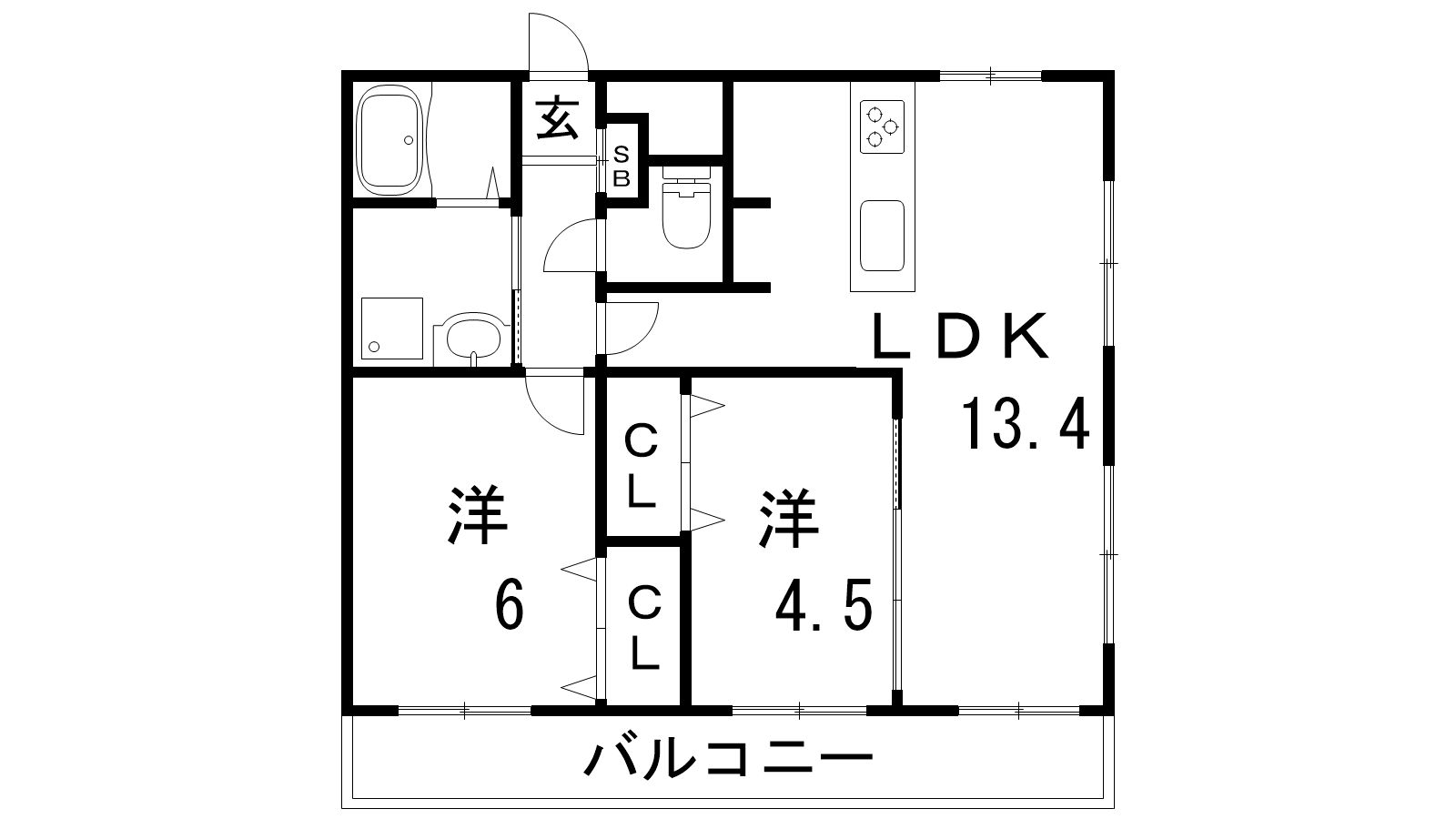 - LDK13.4帖、洋室6帖、洋室4.5帖