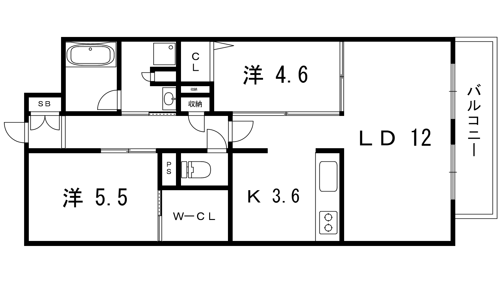 - 洋室4.6帖、LDK15.6帖、洋室5.5帖