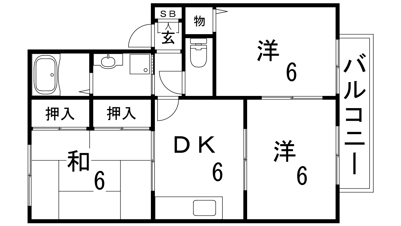- DK6帖、洋室6帖、洋室6帖、和室6帖